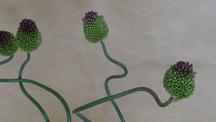 Allium cultivation in Kumamoto Prefecture began in the latter half of the 1980s, and from the very beginning, producers were creating distinctive flowers with artificially curved stalks. Initially, each plant had to be individually wound around or drawn toward a support structure, which made it challenging to produce curved Alliums in large quantities.