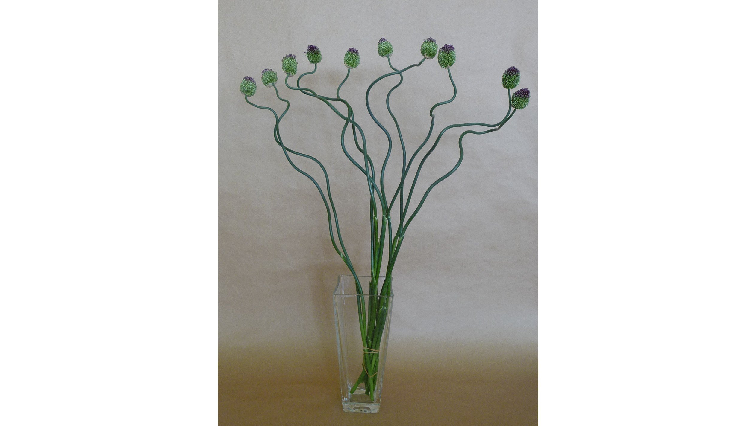 It is highly regarded in ikebana and flower arrangement circles that emphasize originality and expressive design, and it is traded at higher prices than standard straight-stemmed Alliums.