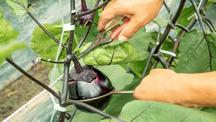 「京賀茂なす」の生産は、京都市から設置委託を受けた「京都市特産そ菜保存ほ」(1)において固定種から自家採種した種子を用い、上賀茂特産野菜研究会(以下、「研究会」)が定めた栽培方法に準じて行われます。